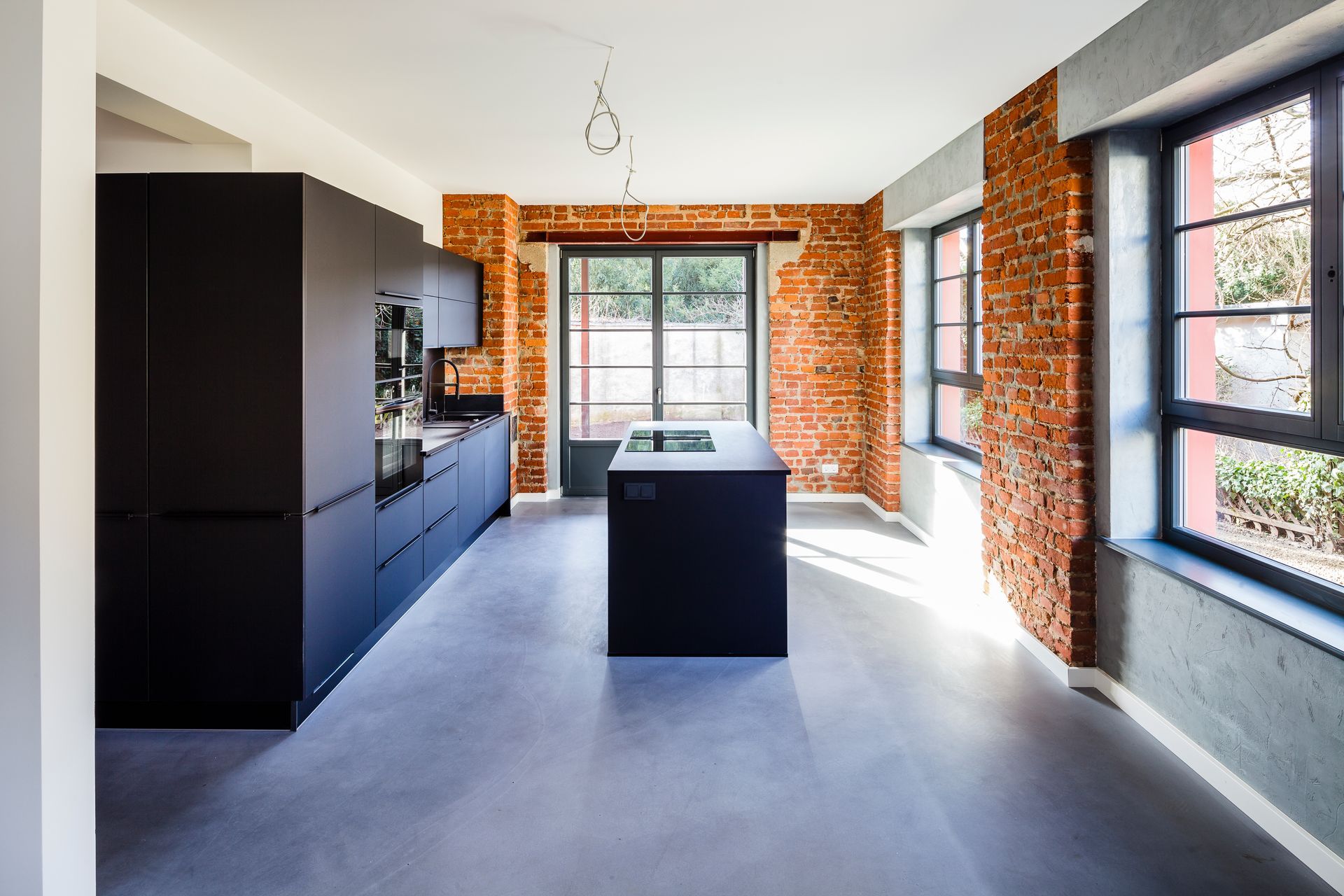 Während wir im Vorderhaus sicher moderne Wohnflächen gestaltet haben, wagten wir zuzsammen mit dem Bauherrn im Hinterhaus ein anderes Konzept. Durch die Reduktion auf das minimal Notwendigste und das Einstellen von Sanitärkernen gelang uns im Hinterhaus der Erhalt eines werkstattähnlichen Ambientes, ohne dabei auf Wohnkomfort verzichten zu müssen. Lediglich manch ein Bad hat keinen Zugang zu Tageslicht, was jedoch auf anderer Seite die komplette Fassade mit seinen Werkstattfenstern erlebbar macht und die Fläche lediglich gliedert statt sie abschließend zu gestalten. Die neuen Bewohner können sich über ein fließendes Raumkontinuum freuen, was mal weniger und manchmal mehr durch versteckte Schiebetüren oder Wände offener oder privater scheinen kann. Ein wenig experimenteller ist die Er haltung des Werkstattcharakters für die Gegenwart und Zukunft...